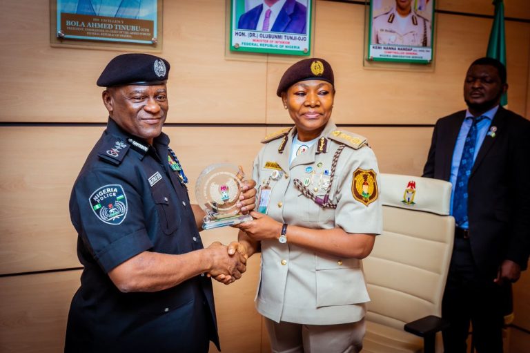 The Inspector General of Police, IGP Olatunji Rilwan Disu as part of his ongoing Inter-Agency collaboration and synergy, paid a courtesy visit to the Comptroller-General of the Nigeria Immigration Service, Kemi Nanna Nandap at the Immigration Headquarters in Abuja.