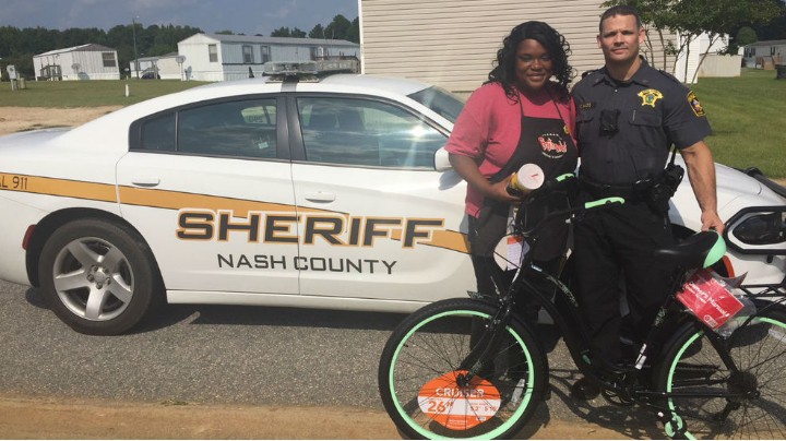Sergeant Scott Bass (White man) noticed Jalisa Corbett (Black woman) walking in the cold and rain for two hours to her job at Bojangles, a 6-7 mile commute. He had observed that she walks that route, morning and evening, every day, no matter the weather. He began giving her rides and sought to help her further.